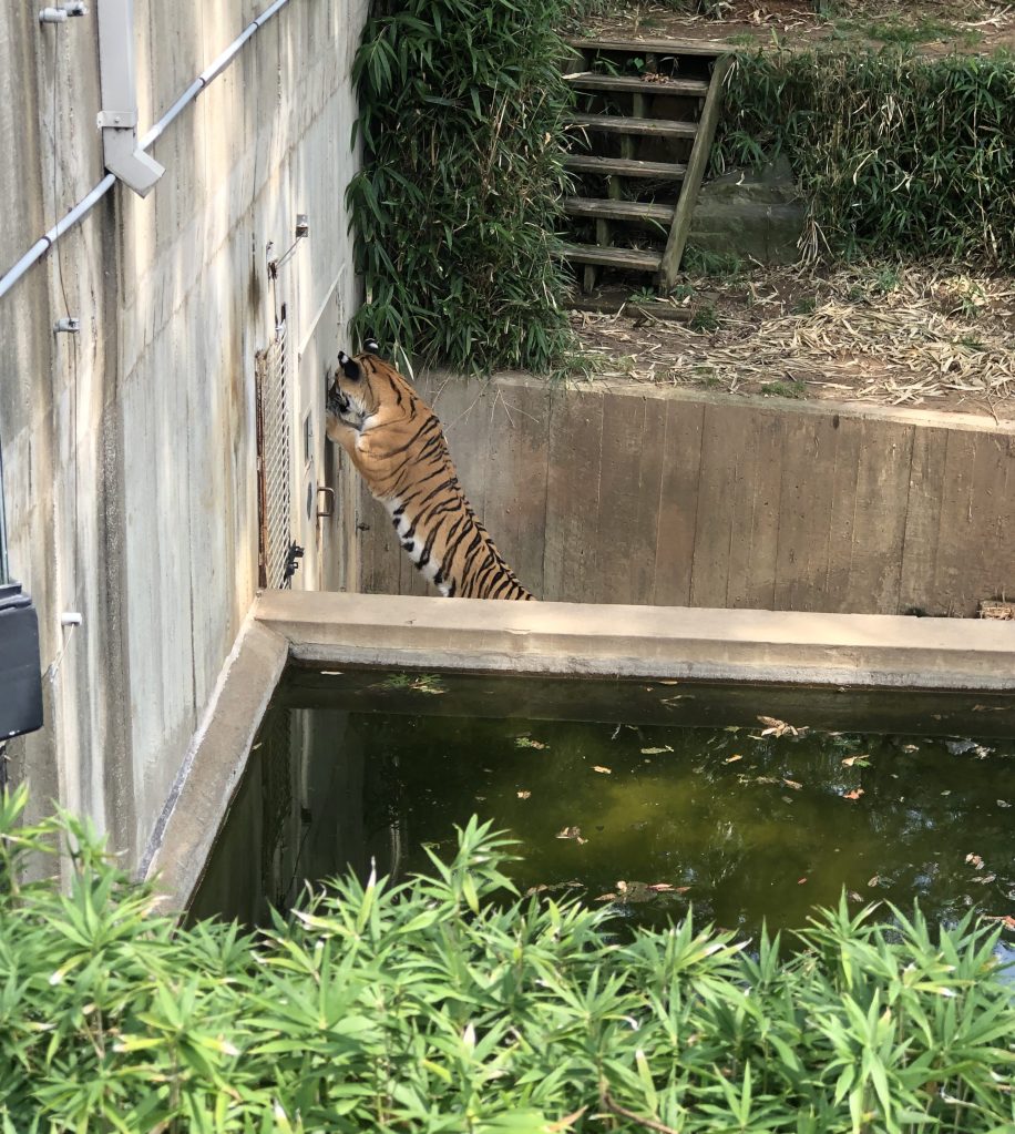 - Watching the tigers for hours at the National Zoo with Elisabeth as they scratched trees, begged for food, and swam in the water surrounding their habitat.