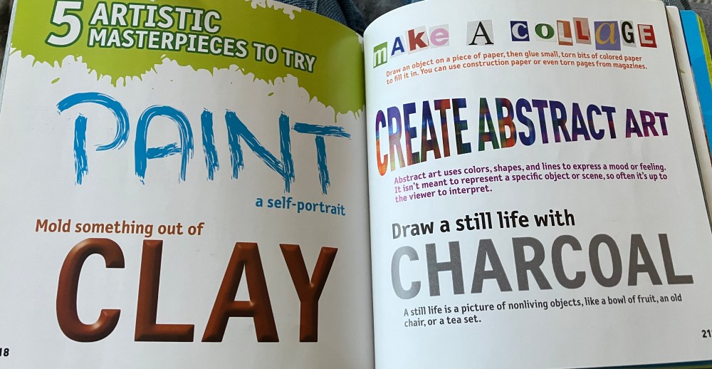I had another plan.I have many kid’s art books that that I haven’t used in a very long time and this exact scenario is why people like me hold onto things forever. With a page on self-portraits, this book has been waiting for years for this very day. Justification!