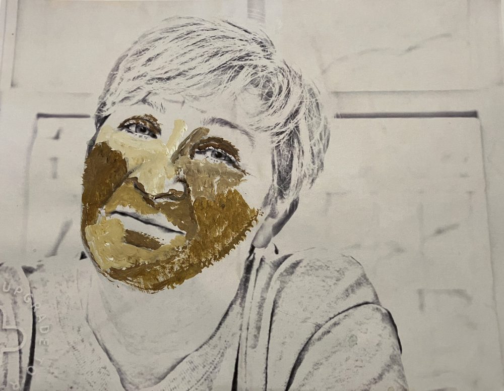 Lee wanted to help by printing a sort of guide using a picture of me. I resisted and then just gave in. He kept saying, if you can get a likeness everything else will fall into place. Thinking I would be able to get a likeness was so ambitious as to be laughable, but I knew the real problem was the painting part. He disappeared upstairs only to return with several pages printed with my face. While appreciative, what I really wanted was for him to show me how he’d paint the page. I had no idea how to start, even with a map to follow.
