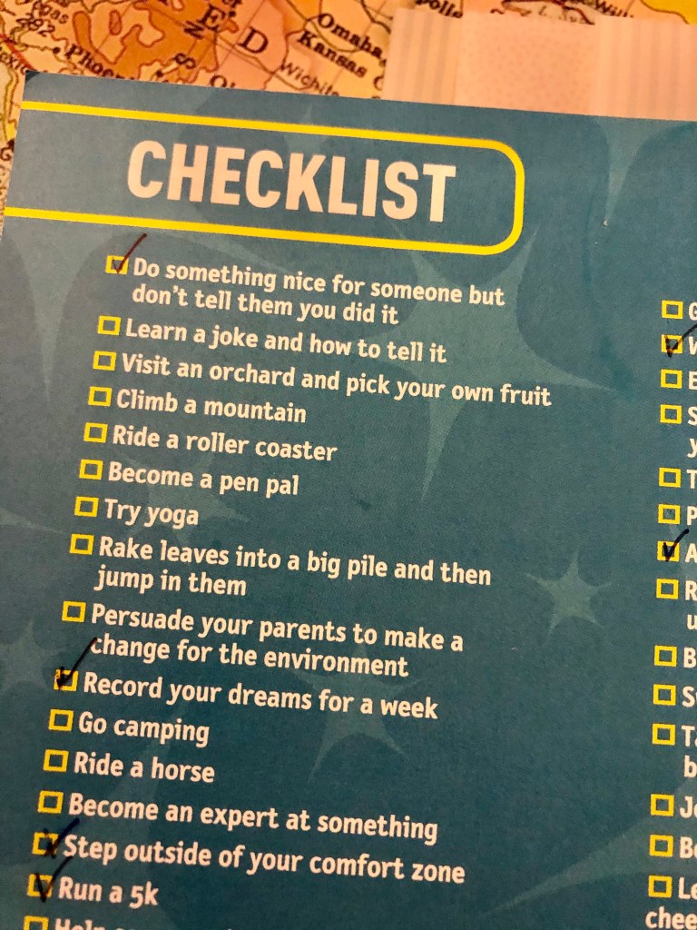 Read a biography (or autobiography) of someone you admireVisit a zoo, an aquarium, and a museum–and take picturesMake a list of 10 things you like about yourself (and then read it whenever you’re feeling down)- Start your own business